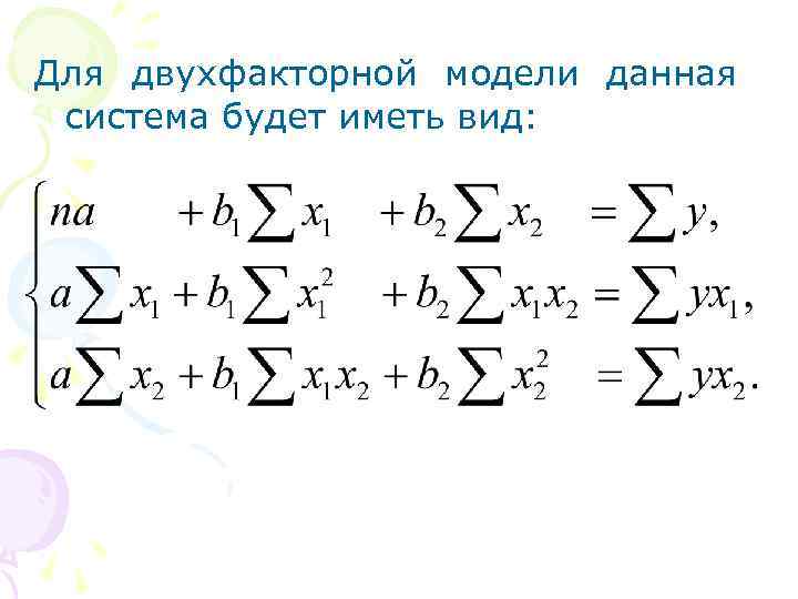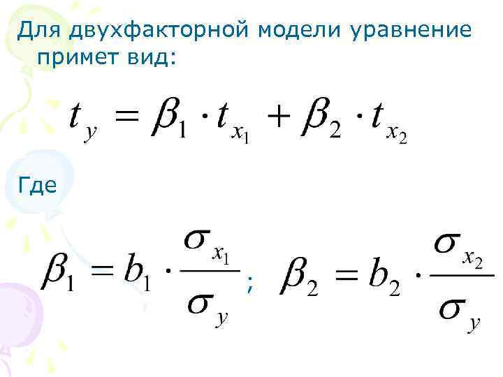Для двухфакторной модели уравнение примет вид: Где ;