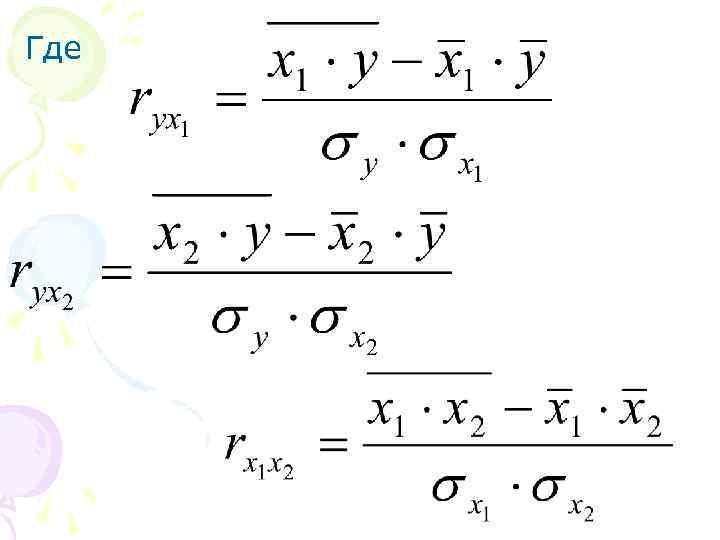 частные коэффициенты корреляции можно также определить по формулам: