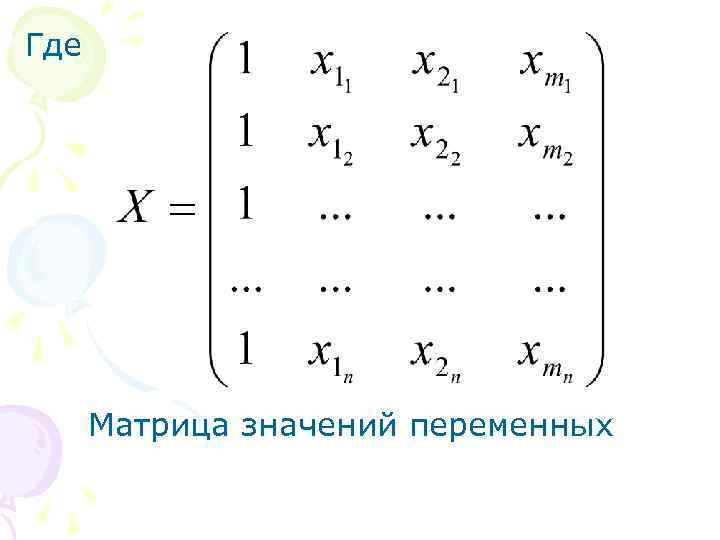 Где Матрица значений переменных