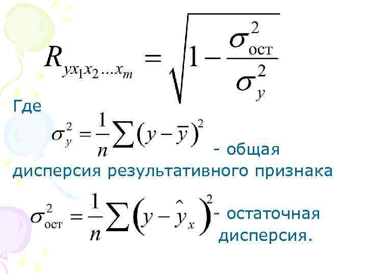Где - общая дисперсия результативного признака - остаточная дисперсия.