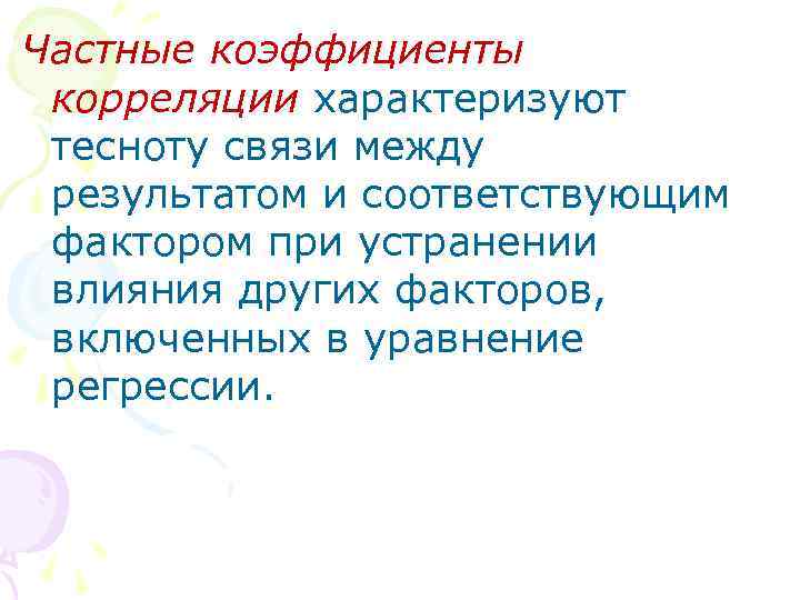 Частные коэффициенты корреляции характеризуют тесноту связи между результатом и соответствующим фактором при устранении влияния других факторов, включенных в уравнение регрессии.