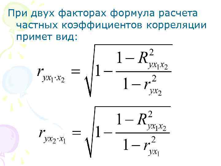 При двух факторах формула расчета частных коэффициентов корреляции примет вид: