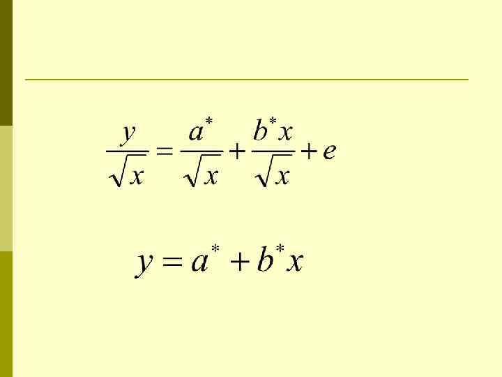 Меры по устранению гетероскедастичности Увеличение числа наблюдений p Изменение функциональной формы модели p Разделение исходной совокупности на качественно-однородные группы и проведение анализа в каждой группе p Использование фиктивных переменных, учитывающих неоднородность p Исключение из совокупности единиц, дающих неоднородность p