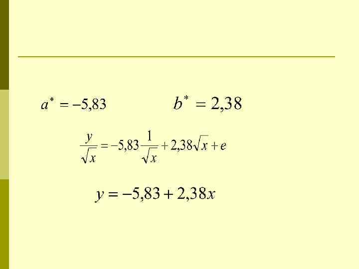 Оценка параметров p p Для оценки параметров уравнения множественной регрессии применяют метод наименьших квадратов (МНК). Нелинейные функции приводятся к линейному виду по параметрам.