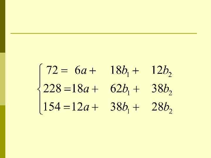 Пример p p Исследовалась зависимость стоимости проезда от расстояния и типа поезда (в электричках и в поездах дальнего следования. Определим параметры уравнения для массивов данных: n n n для всех данных (n=30); для данных о стоимости проезда в электричках (n=17); для данных о стоимости проезда в поездах дальнего следования (n=13).