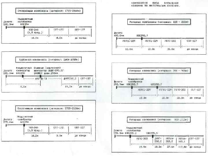 Проектные КНБК для технологии ОБ ОК с разбуриваемыми башмаками под направление Ø 473 мм и кондуктор Ø 340 мм ОК с извлекаемыми КНБК на базе РУС под промежуточную Ø 245 мм и эксплуатационную ОК Ø 178 мм