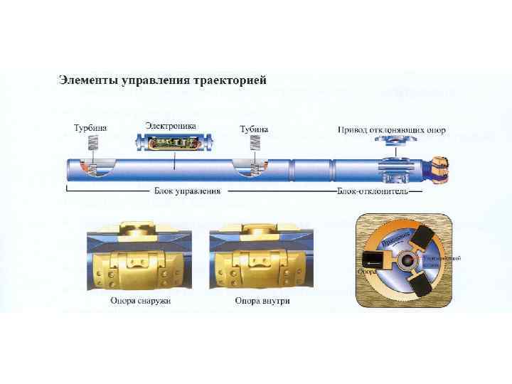 Принцип работы AUTOTRAK Вращающийся ведущий вал Гидравлические модули Электроника управления и датчики отклонения Ребра управления Не вращающийся патрубок управляемого стабилизатора
