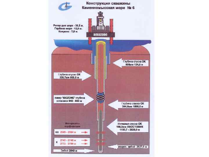 Проектный профиль PK 01 (Ю 0) – Штокмановское ГКМ месторождение 30 м 368 м ОК 30"– 762 мм 430 м ОК 20" – 508 мм 830/833, 5 м высота подъема цемента 1358/1381 м ОК 133/8"– 339, 7 мм 1810/1935 м ОК 103/4" – 273, 0 мм 1887/2169 м фильтр 65/8"– 268, 3 мм 1940/2567 м
