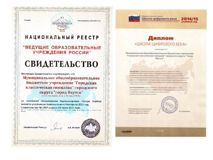 Участие в профессиональных конкурсах ФИО конкурс результат Бобинова Л. А. Городской конкурс классных руководителей. Победитель в номинации «Самый мудрый классный руководитель» Шишигина Ю. И. Грант ректора СВФУ Гомзякова А. О. «Учитель года СВФУ- 2014» «Творческие работы и методические разработки педагогов» Диплом 1 степени Платонова А. А. Республиканский конкурс чтецов среди учителей, посвященный 200 -летию со дня рождения М. Ю. Лермонтова. Диплом 1 степени. Андреева К. Е. Всероссийская акция Сертификат отличника Софронова Л. В. «Тотальный диктант» . Ильин С. В. XI Всероссийский конкурс «Мастер педагогического труда по учебным и внеучебным формам физкультурнооздоровительной и спортивной работы» . Диплом 2 степени