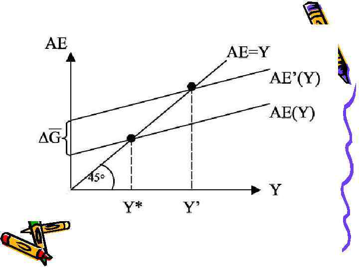 Рост гос. закупок Увеличение государственных закупок ведет к такому же росту автономных расходов, а значит, выпуск изменится пропорционально мультипликатору: