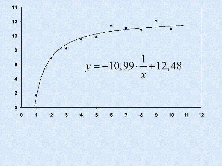 x y 1 2 8, 25 4 9, 52 5 9, 81 6 11, 43 7 11, 09 8 10, 87 9 12, 15 10 наилучшим образом. 6, 88 3 Попробуем провести гиперболу 1, 71 10, 94