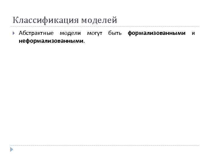 Классификация моделей Абстрактные модели могут быть формализованными и неформализованными.