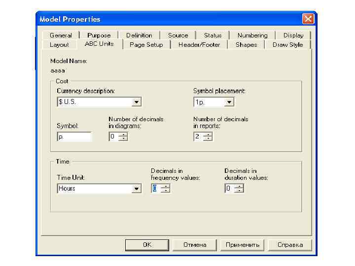 При проведении стоимостного анализа в BPwin сначала задаются единицы измерения времени и денег. Затем описываются центры затрат (cost centers). Каждому центру затрат следует дать подробное описание в окне Definition. Для отдельной модели задается один набор функциональных центров. Общие затраты по работе рассчитываются как сумма по всем центрам затрат. При вычислении затрат вышестоящей (родительской) работы сначала вычисляется произведение затрат дочерней работы на частоту работы (число раз, которое работа выполняется в рамках проведения родительской работы), затем результаты складываются. Подобные вычисления автоматически проводятся по всей иерархии работ снизу вверх. При построении модели «TO BE» следует также максимально удовлетворять требованиям процессного подхода к управлению: правильно определять состав функций каждого бизнес-процесса на нижних уровнях иерархии. Выходом каждого бизнес-процесса должен воспользоваться хотя бы один клиент, необходимо максимально сократить количество подразделений, поскольку большинство проблем возникает на границах между подразделениями организации. Для этого надо либо заранее описать действия на всех этапах бизнес-процесса, либо изменить структуру подразделений, либо изменить поток работ.