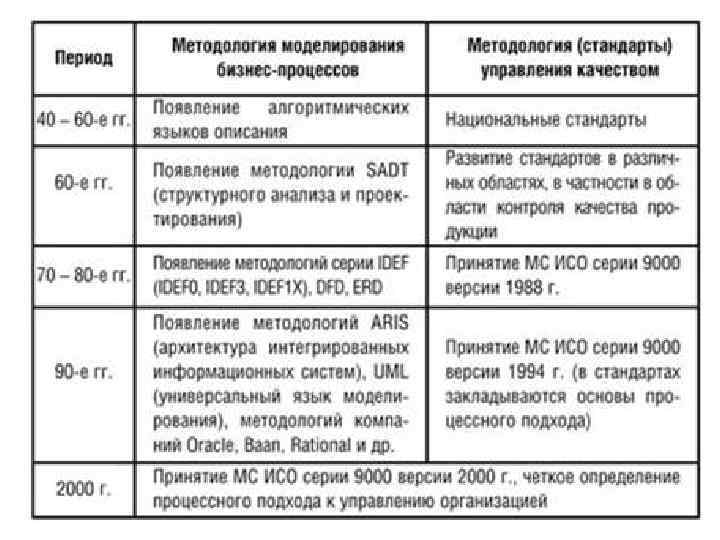 Под методологией (нотацией) создания модели (описания) бизнес-процесса понимается совокупность способов, при помощи которых объекты реального мира и связи между ними представляются в виде модели. Любая методология (методика) включает три основные составляющие: – теоретическая база; – описание шагов, необходимых для получения заданного результата; – рекомендации по использованию как отдельно, так и в составе группы методик.
