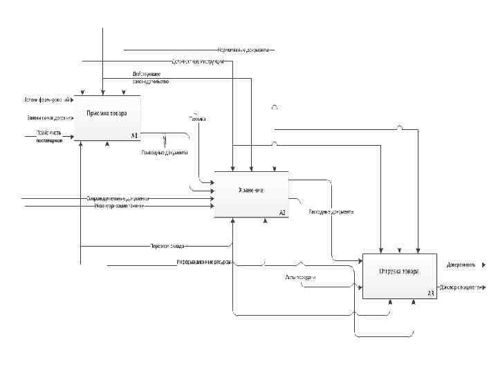 № Бизнеспроцесс Внешние входы Заявки 1 Приемка техники от Внешние выходы других Техника. формирований. Заявки командования. Прайс-листы Приходные документы. Сопроводительные документы. поставщиков. Инвентаризация 2 Хранение техники. Расходные документы. Акты передачи. Приходные документы. Счета. Расходные документы. 3 Отгрузка техники Акты передачи. Доверенность на пользование. Договор с водителем.
