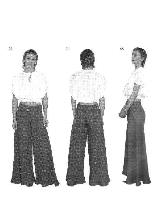Моделирование брюк 1. 2. 3. 4. 5. 6. 7. 8. План Изменение конструкции брюк с учётом формы нижней опорной поверхности тела Брюки со складками на передней половинке Брюки с подкройным поясом и кокеткой на задней половинке Брюки - «бананы» Широкие брюки на корсаже Шаровары Брюки-зуавы Юбки-брюки