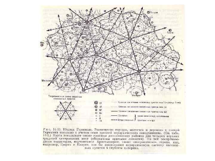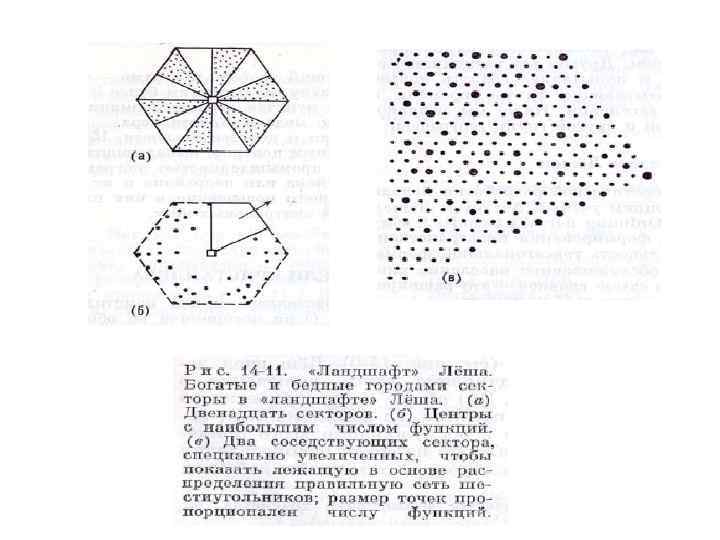 Экономический ландшафт: модификация модели В. Кристаллера А. Лёшем n n Максимальное совмещение функций центральных мест Построение иерархии «сверху – вниз» «Богатые» и «бедные» городами секторы Связь концентрических и секторных моделей