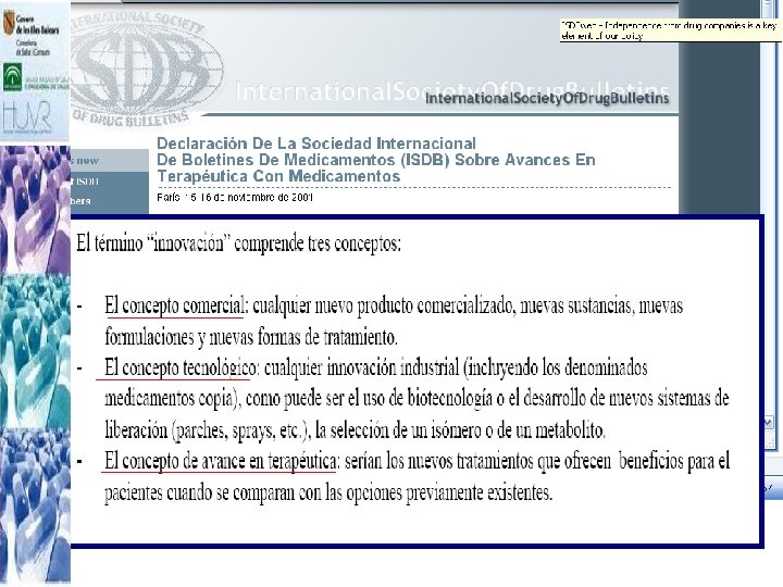 Situación internacional (cont. ) Australia. Pharmaceutical Benefits Advisory Committee (PBAC) – A diferencia del Nice, sólo evalúa medicamentos, realiza estudios de coste-efectividad, impacto presupuestario y tiene en cuenta el beneficio clínico y la existencia de alternativas. – Evalúa solicitudes de la industria farmacéutica – Los miembros del PBAC son nombrados por el gobierno australiano y el informe de evaluación lo hacen ellos mismos. – Decisiones ejecutivas que se traducen en financiación pública.
