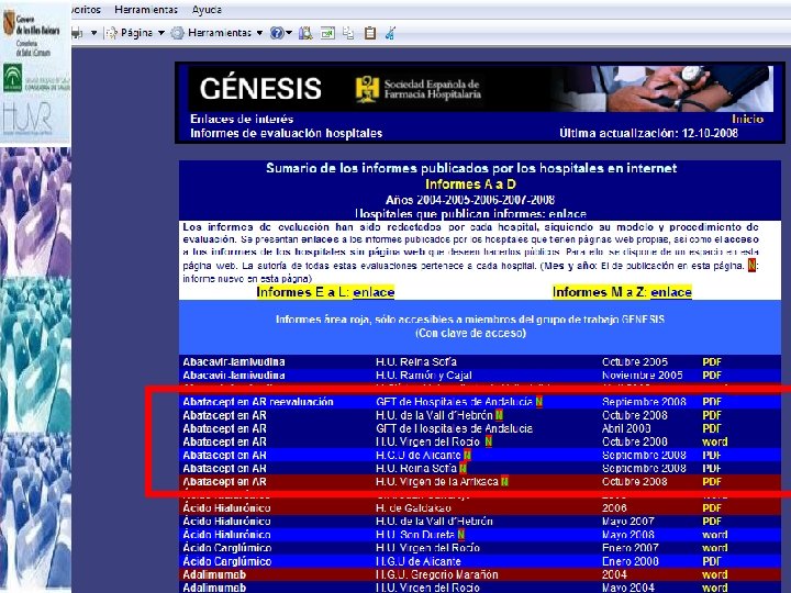 od o GENESIS ét Metodología: Modelo de Informe ás a llá d el m EVALUACION DE NUEVOS MEDICAMENTOS • Modelo de Solicitud • Modelo de Informe • Programa MADRE M INTERCAMBIO TERAPEUTICO • PITs • Medicamentos homólogos