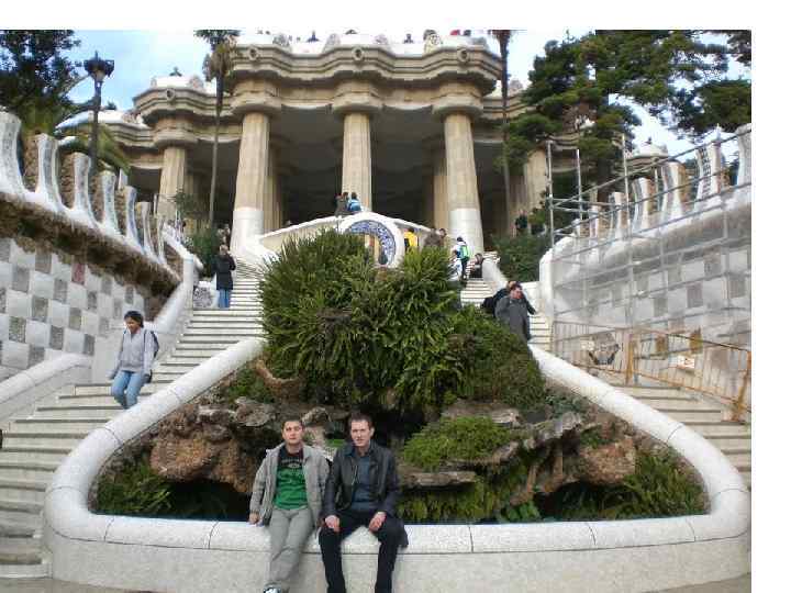 Парк Гюэль. Задумано как пригород-сад Барселоны. Крутой склон покрыт сетью серпантинов, галерей, виадуков, подчиненных рельефу. Стремился к органическому соединению природного и рукотворного.