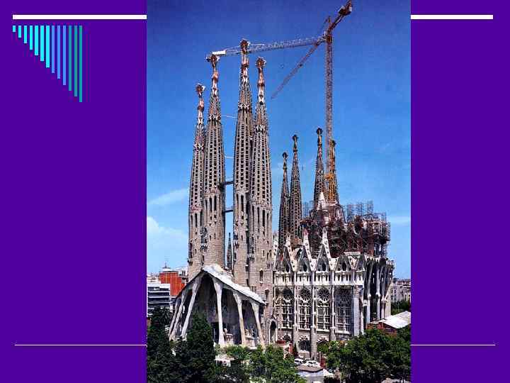 Мастера и шедевры зарубежной архитектуры o Антонио Гауди (Испания) o Виктор Орт и Хенри ван де Велде (Бельгия) o Эктор Гимар (Франция) o Отто Вагнер (Австрия) o Ле Корбюзье (Швейцария) o Миса ван дер Роэ (Германия) o Хендрик Петрюс Берлаге (Голландия) o Алвар Аалто и Элиель Сааринен (Финляндия) o Луис Салливен и Фрэнк Ллойд Райт (США)