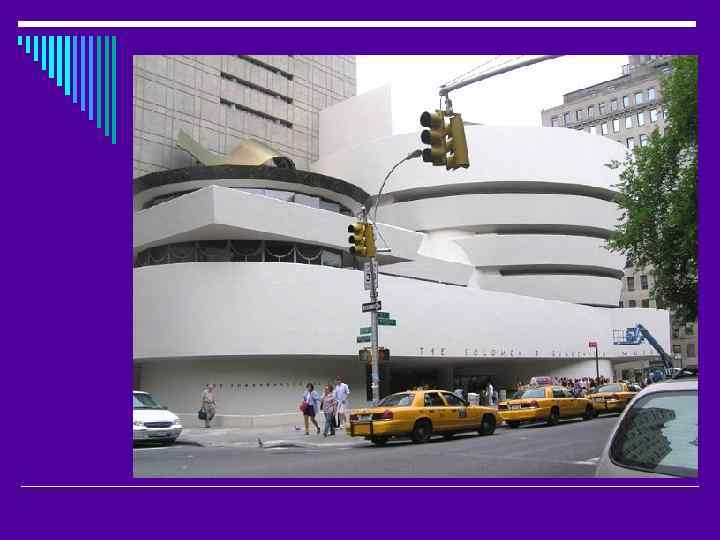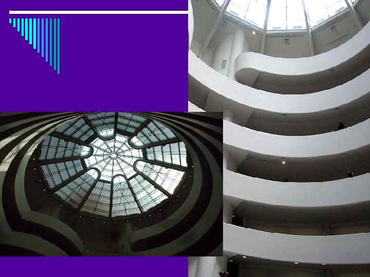 Посетители музея Гуггенхейма начинают просмотр сверху и по спирали спускаются вниз. Эту уникальную концепцию расположения залов предложил архитектор Ф. Л. Райт.