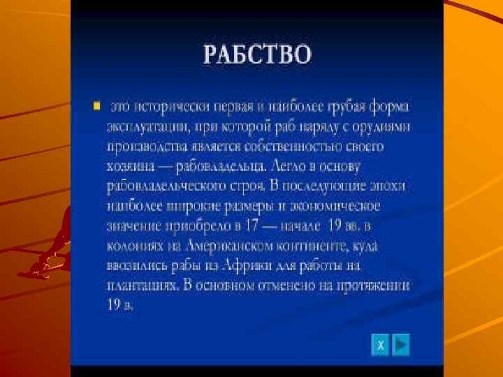РАБОВЛАДЕЛЬЧЕСКИЙ СТРОЙ характеризуется преимущественно частной собственностью на средства производства, человека раба и на продукты труда. Уровень развития производительных сил определяется простыми средствами труда и применяемой для части их живой силы животных и сил природы воздух, вода и огонь.