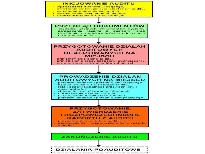 Ad d) Opis przebiegu procesów (poziom wykonawczy) - słownie? graficznie? Plan auditów na rok. . . Przedstawiciel kierownictwa ds SZJ 1 -N 2 -N Opracowanie planu auditu Start Koniec Raport z auditu Wyznaczenie auditora Nie Zatwierdzony? Dyrektor Tak 3 -N Auditor Właściciel procesu Przygotowanie auditu Raport z auditu 4 -N Przeprowadzenie auditu 5 -N Realizacja działań poauditowych Opracowanie raportu Wykonane? Nie Tak