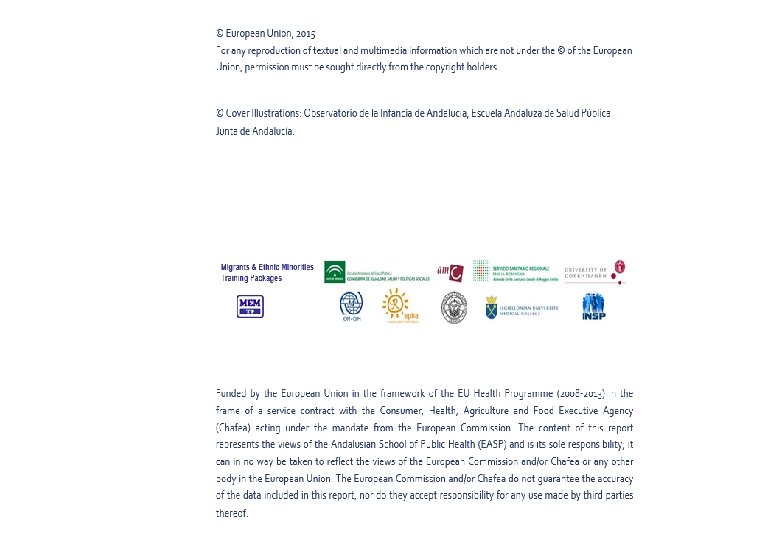 References Sears KP. Improving cultural competence education: the utility of an intersectional framework. Medical Education 2012: 46: 545551. European Commision. Justice. The “For Diversity. Against Discrimination. ” information campaign. http: //ec. europa. eu/justice/discrimination/awareness/information/index_en. htm European Commission. Directorate-General for Employment, Social Affairs and Equal Opportunities Combating Discrimination A Training Manual, 2005. file: ///C: /Documents%20 and%20 Settings/aruiza. VEASP/Mis%20 documentos/Downloads/train_en%20(1). pdf Björngren Cuadra, C. ; Cattacin, S. : Migration and health: difference sensitivity from an organisational perspective. Malmö University. 2007. www. bit. mah. se/MUEP IENE. Intercultural education of nurses and other medical staff in European Commission. Life Long Learning Programme. Education and Culture DG. http: //ieneproject. eu/ UNESCO, United Nations Educational, Scientific and Cultural Organization. Intercultural Competences. Conceptual and Operational Framework. Paris: UNESCO, 2013. http: //unesdoc. unesco. org/images/002197/219768 e. pdf European Commission. Report from the Commission to the European Parliament and the Council. Brussels. 2014. http: //europa. eu/publications/official-documents/index_en. htm