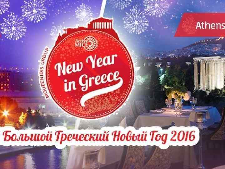 Программа Мой Большой Греческий Новый Год 2016 в Афинах Начало программы в 21: 30 Приветственный коктейль будет предложен всем гостям при входе в основной банкетный зал Royal Olympic. Начало основной программы в 22: 00 В Новогодней программе участвуют: • Зажигательная музыкальная программа в исполнении греческого ансамбля и известной греческой певицы Кетерины Курентзи; • Харизматичный ведущий, • Греческий Дед Мороз – Агиос Василис, • А также Диджей с самыми лучшими и любимыми хитами. Что вас ждет: Много музыки и смеха, задорные греческие танцы в дружном хороводе, изысканные угощения за столом, отличное вино, посленовогодние ночные гуляния , добрая порция греческих шуток, праздничный фейерверк и танцы под лучшие мировые хиты.