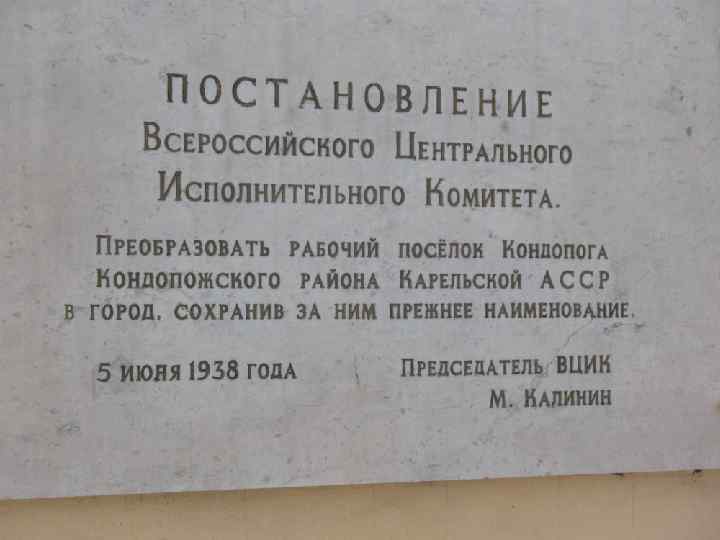 Вместе с комбинатом рос поселок Кондопога. Вместо бараков в 1935 году появились первые кирпичные здания, вслед за ними были построены Дом культуры, баня, школа, детские сады, больница и аптека. В 1938 году поселок бумажников был преобразован в город. Об этом знаменательном событии напоминает памятная доска, установленная на доме по улице Советов 17.