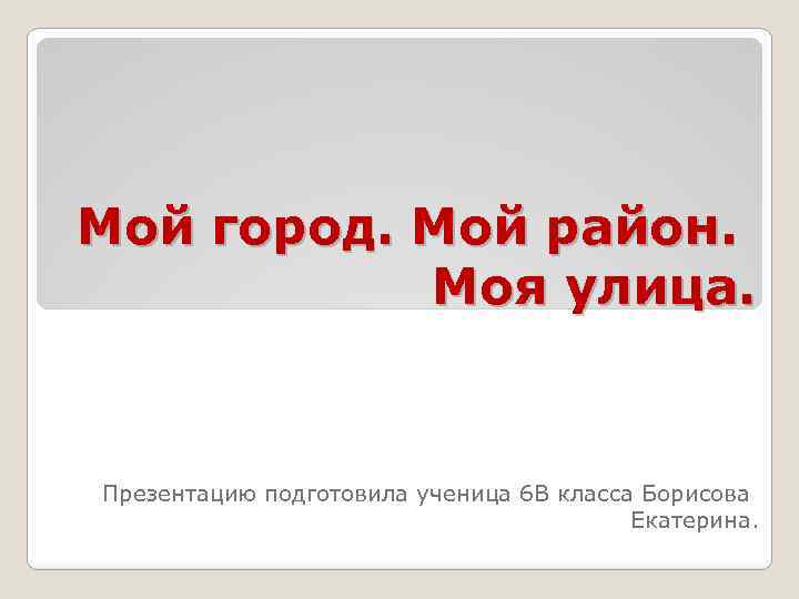 Мой город. Мой район. Моя улица. Презентацию подготовила ученица 6 В класса Борисова Екатерина.