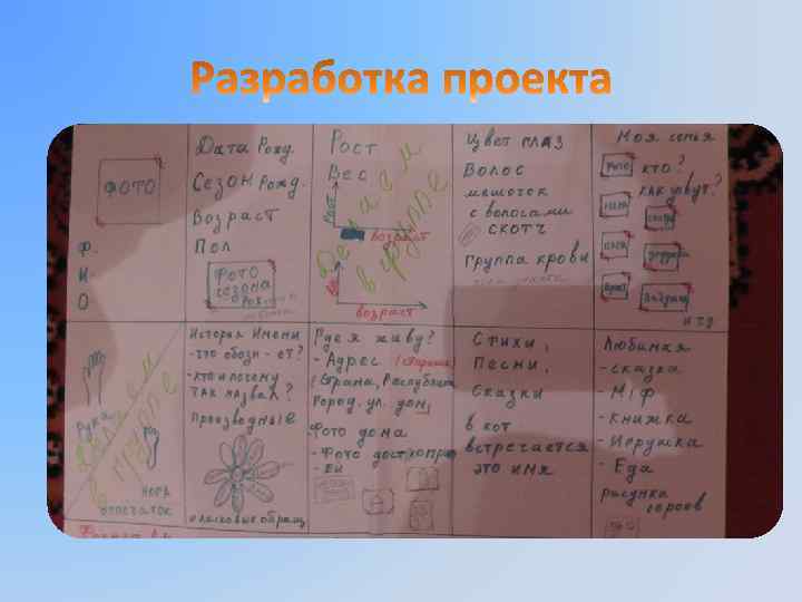 1. Разработка проекта – формирование проблемного поля. 2. Составление списка вопросов для оформления паспорта дошкольника. 3. Написание, оформление и выступление со своим паспортом. 4. Подсчет и занесение данных в таблицы: «Мы растем» и «Вот какие у нас глазки» . 5. Выставка детских паспортов. 6. Разработка, изготовление атрибутов для сюжетно-ролевых игр «Самолет» и «Поезд» . 7. Завершение проекта – награждение участников.