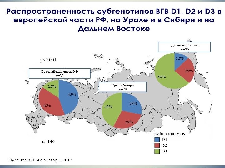 Распространение субгенотипов ВГВ в СЗФО (n = 71) D 3 D 2 D 3 А 2 D 1 D 3 А 2 D 3 D 2 ? D 3 D 1 D 2 D 3 ? D 3 D 1 D 3