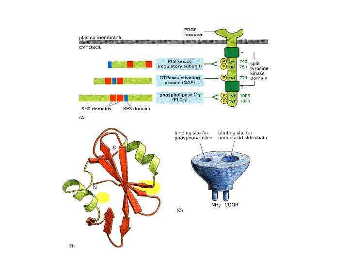 Сигнальные молекулы связываются с участками тирозинового Фосфорилирования на цитозольных доменах рецепторов