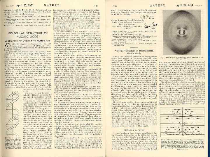 ДНК-Структура 1953 Ф. Крик (Англия- 1916 -2004) Дж. Уотсон (США р. 1928) Лаборатория молекулярной биологии, Кембридж, Великобритания. ДНК – имеет структуру двойной спирали. Показана ее биологическую роль. Нобелевская премия 1962