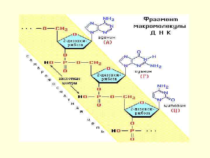 Пиримидиновые основания Цитозин Урацил (2 -окси-4 -аминопиримидин) (2, 4 -диоксипиримидин) Пуриновые основания Гуанин (2 -амино-6 -оксипурин) Аденин (6 -аминопурин) Тимин (5 -метилурацил)