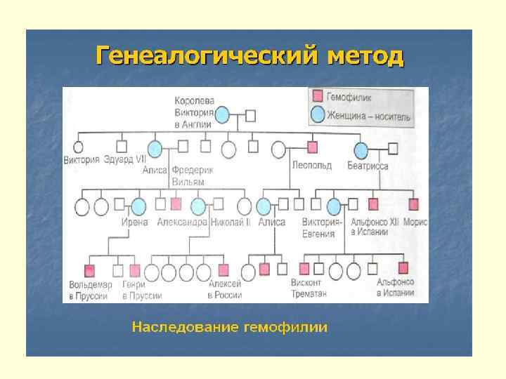 • Ф. Гальтон 1865 г. Составление родословной человека, характер наследования признаков Генеалогический метод