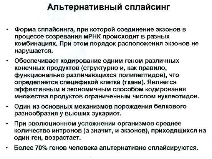 КОДИРУЮЩАЯ ЧАСТЬ экзон-интронная структура генов Начало транскрипции Транскрипция Первичный транскрипт Сплайсинг
