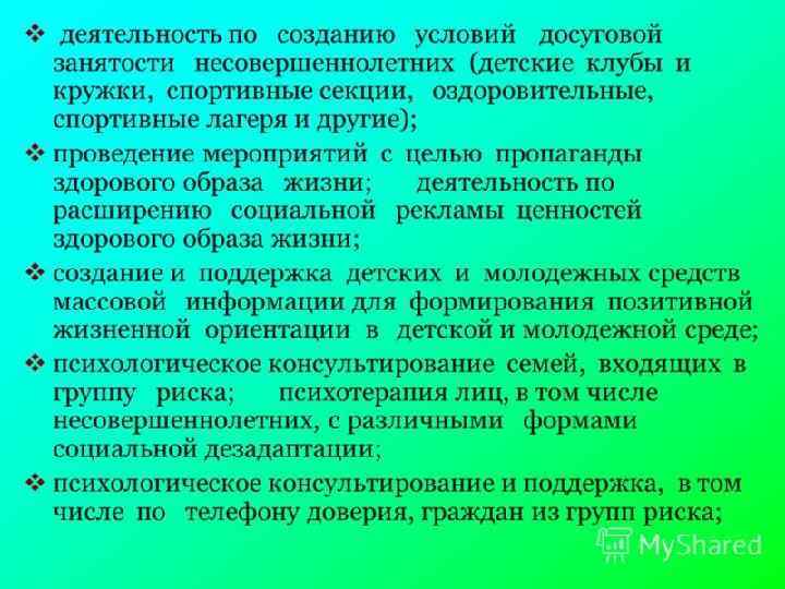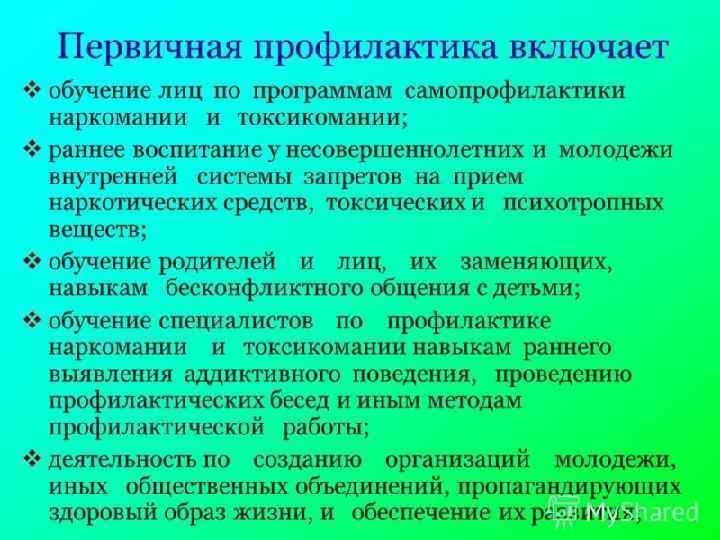 Педагогические меры профилактики • Принципы ведения профилактической работы Организация мероприятий по профилактике наркомании строится на основе целевых программ, объединенных общей концепцией профилактической работы.