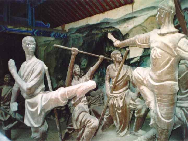 Видео Техники с оружием Фото Главное меню конец Разработанный монахами Шаолиня стиль борьбы без оружия, считается основой всех китайских форм боевого искусства. Согласно легенде, монахи этого монастыря помогли танскому императору Тай-цзуну (626 -649) в борьбе против восставшего сановника Ван Ши-чуна. Тринадцать монахов, вооруженных простыми деревянными дубинками, сумели разгромить армию мятежников и захватить в плен ее главаря. В благодарность император присвоил Шаолиню почетное наименование "Первого монастыря Поднебесной".
