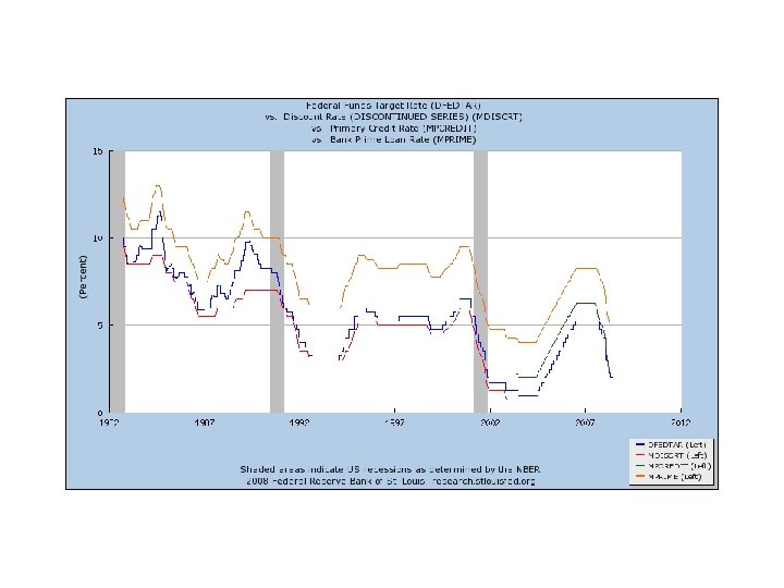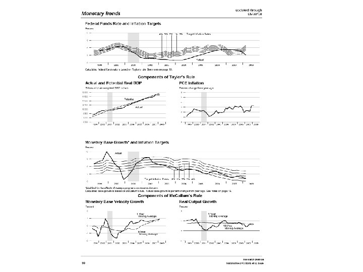 Goals and strategy of monetary policy Other aspects of policy implementation • Intermediate targets • Inflation targeting • Taylor’s rule – i = r* + π +. 5(y – y*) +. 5(π-π*) – i is fed funds target rate, r* is real interest rate at full employment, y is real output, y* is full employment output, π is the inflation rate and π* is the target inflation rate.