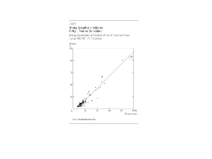 Linking money to the economy The effects of money in the long-run Quantity theory of money Assume: In the long-run 1) velocity independent of money stock; 2) output independent of money stock. M = (ky)P ∆M = (ky)∆P ∆M/M = (ky)∆P/M = ∆P/P