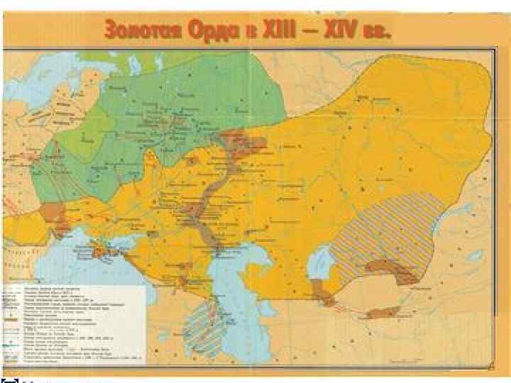 4. Золотая Орда l l l После смерти Бату ханом стал Берке (12551266) После него правил Менгу-Тимур (1266 -1280). Наиболее известные ханы Золотой орды – Узбек хан (1312 -1342) и Джанибек (1342 -1357). На период правления этих ханов приходится наивысший расцвет Золотой орды. Узбек-хан объявил ислам государственной религией Золотой Орды (1312). С 1357 по 1380 годы на троне сменилось два с половиной десятка ханов ( «Смутное время» ).