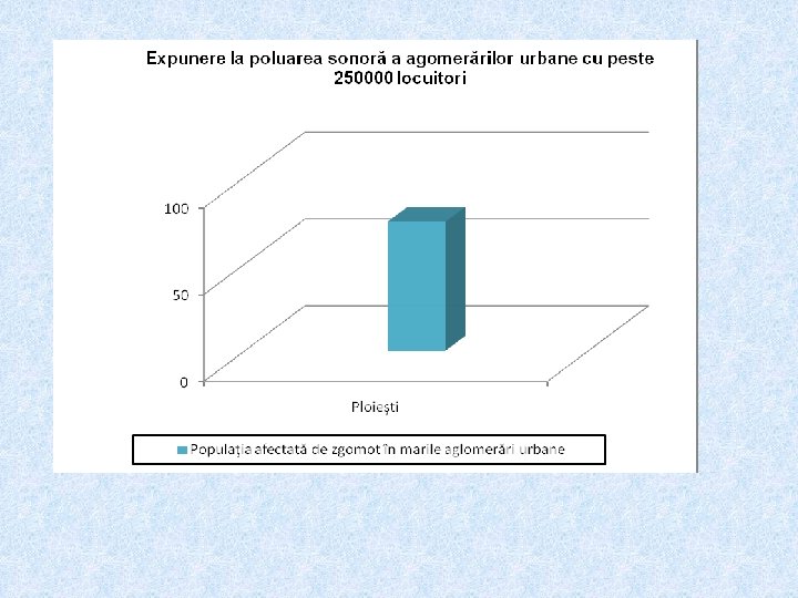 Număr total de locuitori expuşi, nivel de zgomot, raportaţi la indicatorul Lzsn, Lnoapte în Aglomerarea Ploieşti (înformație din Harta de zgomot din anul 2013) Nr. crt Tip sursă Numărul persoanelor expuse la zgomot (Lzsn) Numărul persoanelor expuse la zgomot (Ln) 1 Străzi 168900 50100 2 tramvai 37100 23400 3 C. F. R. 37100 23400 4 industrie 18300 3700