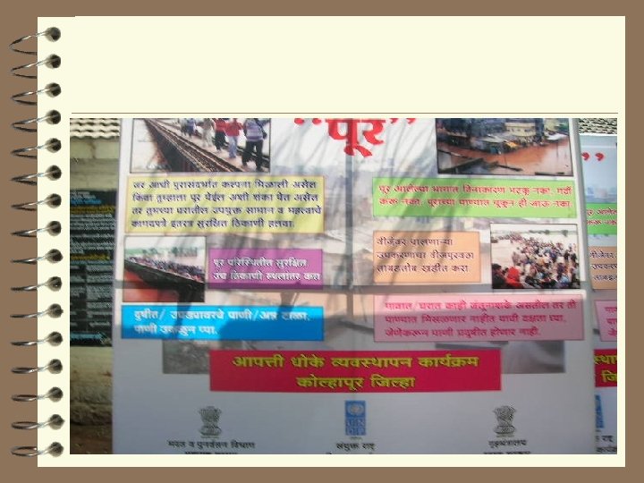 Disaster Risk Management programme 4 Kolhapur is one of the DRM district’s in Maharashtra. 4 From the beginning of programme district has done proper implementation of DRM in the district. 4 All targets under DRM have been achieved in the district except the workshop for Taluka disaster management committee members. 4 This is planned in the first week of June 09