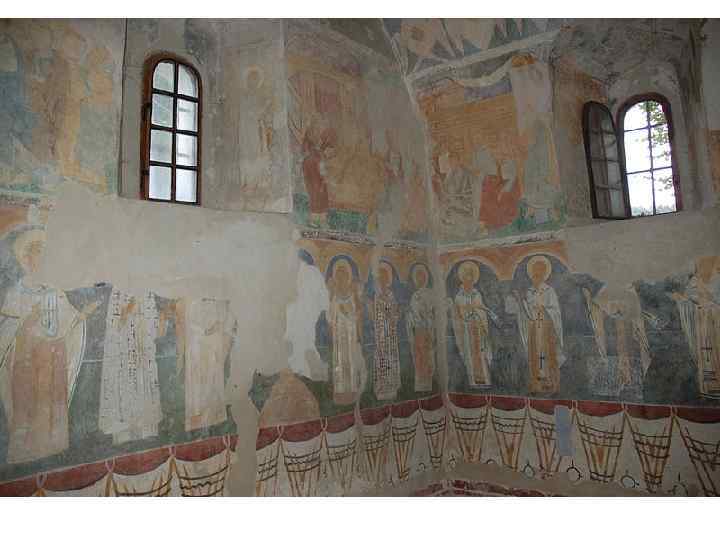 Комплекс фресок 14 ст • Від розписів 15 ст. у нефі, прибудованому пізніше до горянської ротонди, збереглися дві сцени: - “Розпяття”, “Покрова”