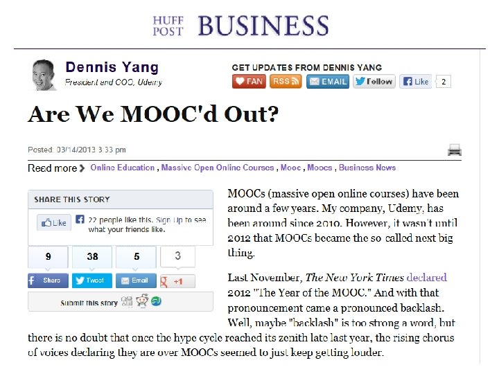 … within the next 12 months massively open online courses (MOOCs) … will see widespread adoption in higher education (p. 4) http: //www. nmc. org/pdf/2013 -horizon-report-HE. pdf