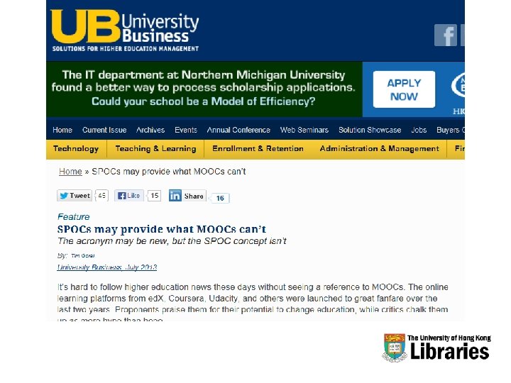 MOOCs and SPOCs: Where is the Library? Peter E Sidorko The University of Hong Kong