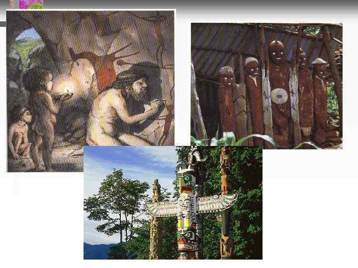 Этапы эволюции религии Родоплеменные древние верования 1) 2) 3) 4) 5) Тотемизм (вера в сверхъестественные связи людей с животными, растениями) Фетишизм (вера в сверхъестественные свойства предметов) Анимизм (вера в существование духов и душ) Магия (вера в возможность влиять на окружающий мир с помощью действий) Шаманизм (общение с духами, душами)